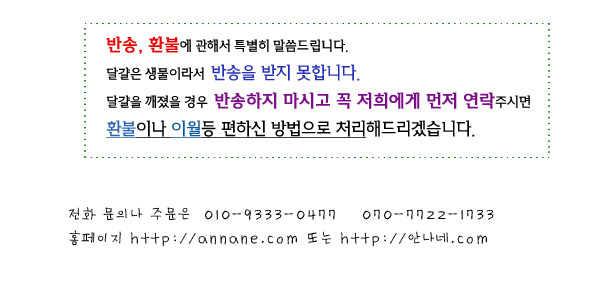 소비자의 변심에 의한 교환과 환불은 되지 않습니다. 신중하게 주문해주세요.