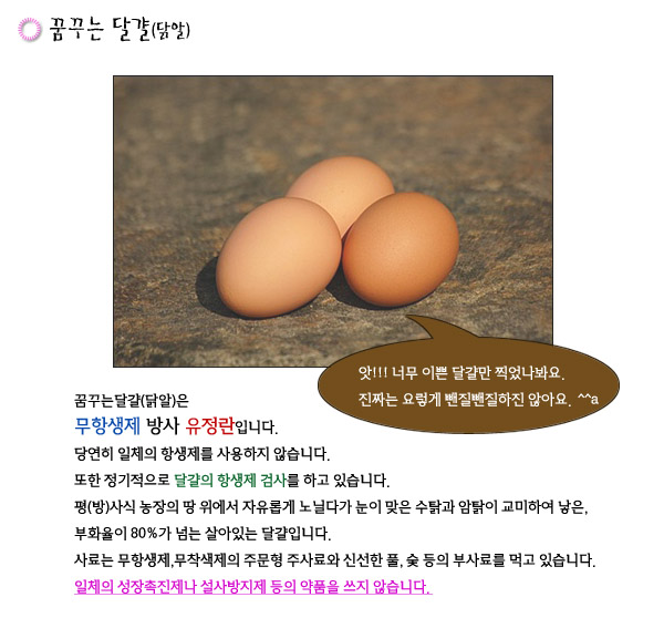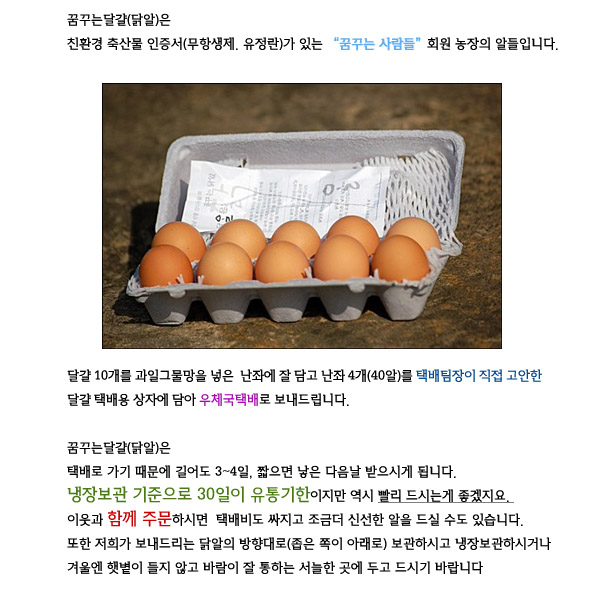 꿈꾸는 사람들의 장터 "꿈사몰"에서 판매하는 농산물과 달걀은 생물이므로