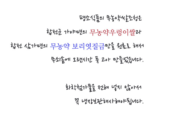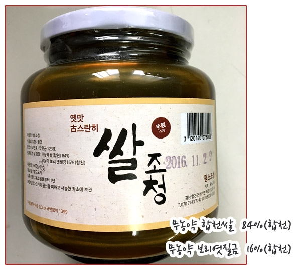 - 무농약쌀84%, 무농약보리엿질금16%(국내산)